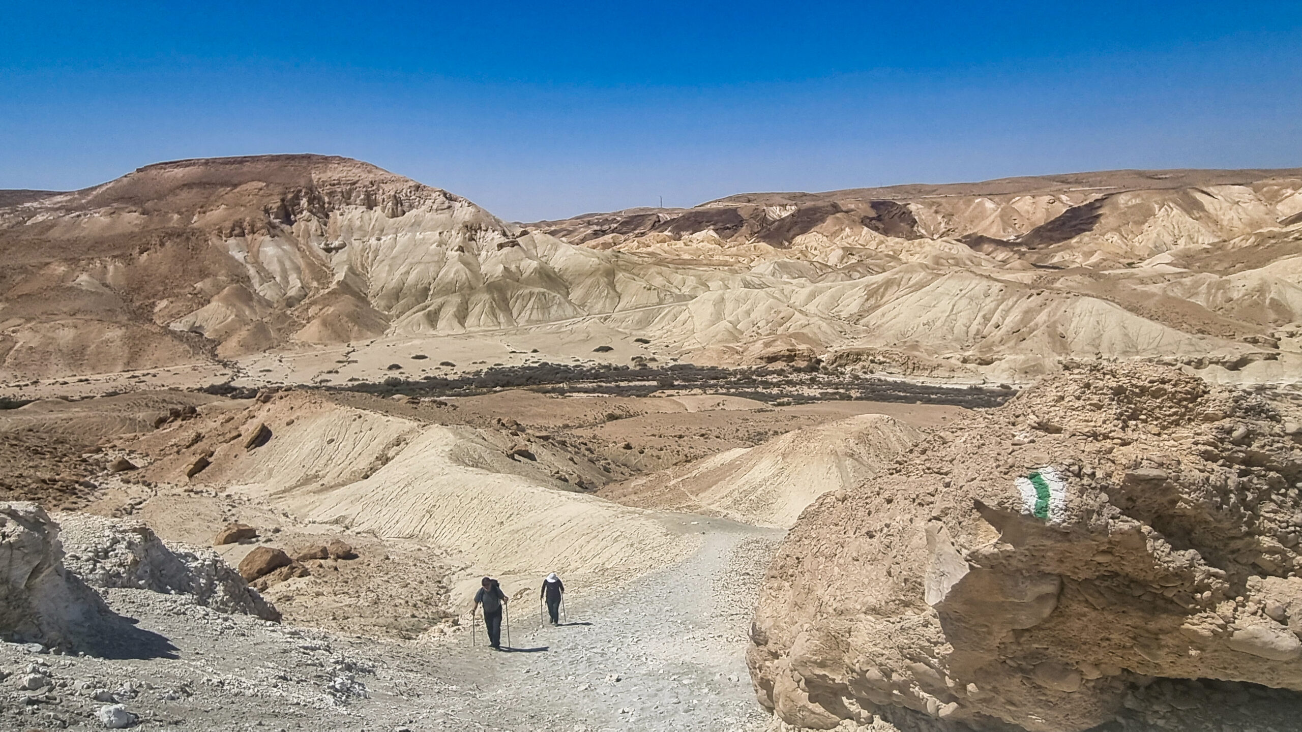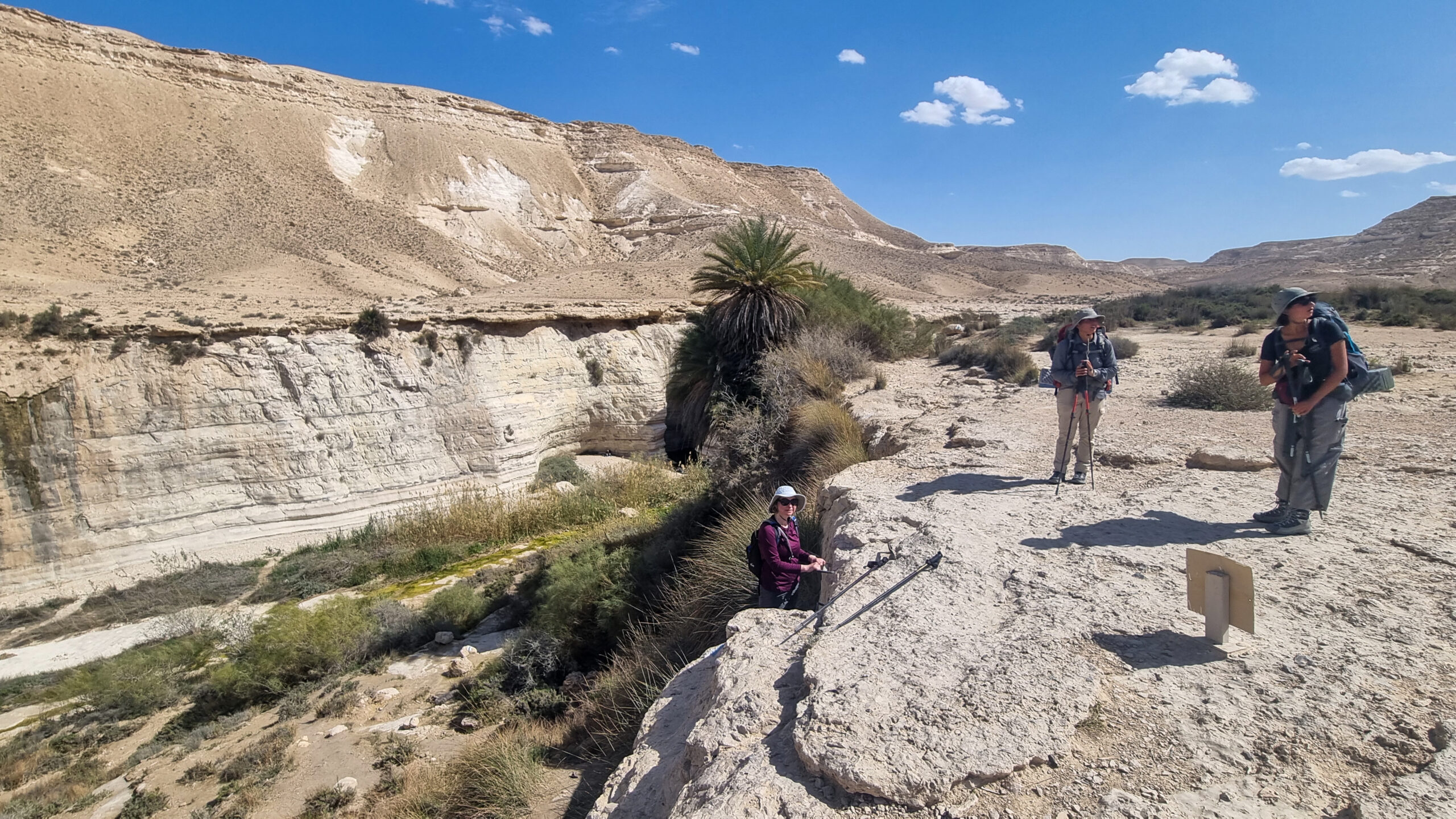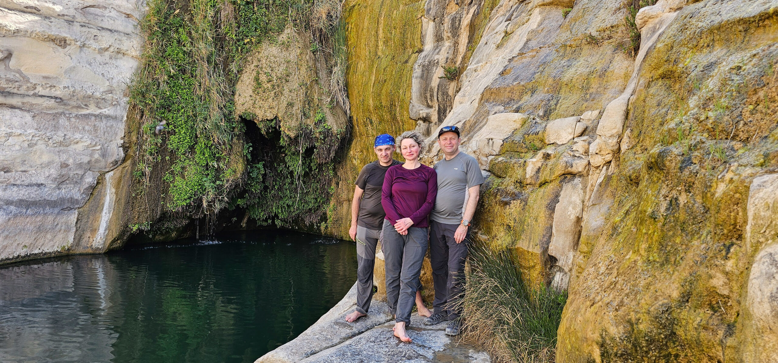 Выезжаем из дому в 8:30. В 11:50 уже выходим на маршрут. Перед нами – подъем на Маале Давшан. Цель – источник Эйн Акев. По дороге через плато пустыни пересекаем впечатляющий Ручей Цин: